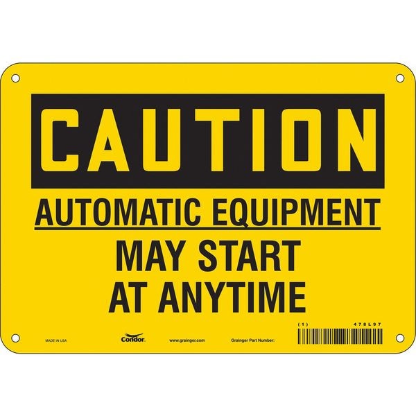 Safety Sign, Vertical Rectangle, Number of Printed Sides 1, English, Sign Format Traditional OSHA, Sign Legend Automatic Equipment May Start At Anytime, Sign Legend Background Color Yellow, Sign Legend Style Text