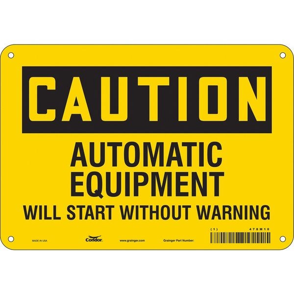 Safety Sign, Vertical Rectangle, Number of Printed Sides 1, English, Sign Format Traditional OSHA, Sign Legend Automatic Equipment Will Start Without Warning, Sign Legend Background Color Yellow, Sign Legend Style Text
