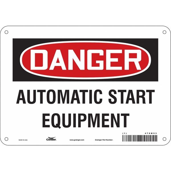 Safety Sign, Vertical Rectangle, Number of Printed Sides 1, English, Sign Format Traditional OSHA, Sign Legend Automatic Start Equipment, Sign Legend Background Color White, Sign Legend Style Text