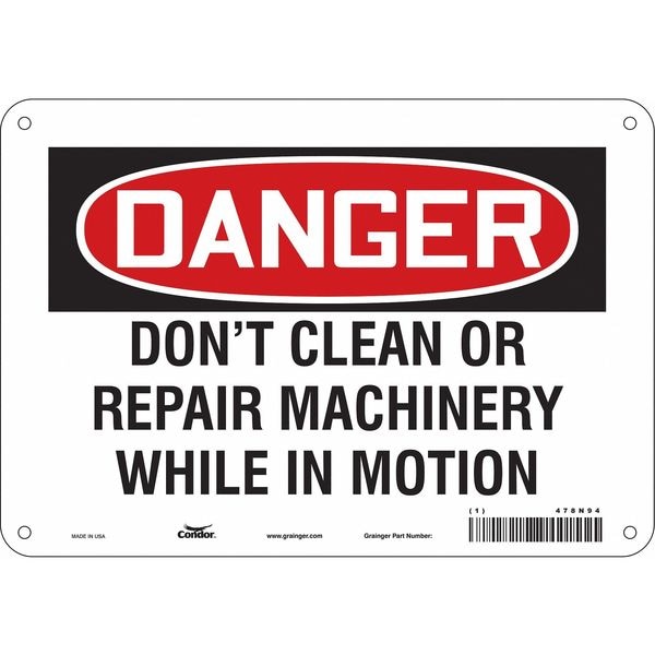 Safety Sign, Vertical Rectangle, Number of Printed Sides 1, English, Sign Format Traditional OSHA, Sign Legend Don'T Clean Or Repair Machinery While In Motion, Sign Legend Background Color White, Sign Legend Style Text