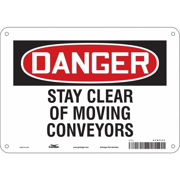 Safety Sign, Vertical Rectangle, Number of Printed Sides 1, English, Sign Format Traditional OSHA, Sign Legend Stay Clear Of Moving Conveyors, Sign Legend Background Color White, Sign Legend Style Text