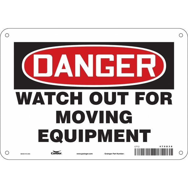 Safety Sign, Vertical Rectangle, Number of Printed Sides 1, English, Sign Format Traditional OSHA, Sign Legend Watch Out For Moving Equipment, Sign Legend Background Color White, Sign Legend Style Text