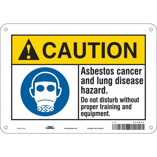 Safety Sign, Vertical Rectangle, Number of Printed Sides 1, English, Sign Format ANSI/OSHA Format, Sign Legend Asbestos Cancer And Lung Disease Hazard. Do Not Disturb Without Proper Training And Equipment., Sign Legend Background Color White, Sign Legend Style Symbol and Text