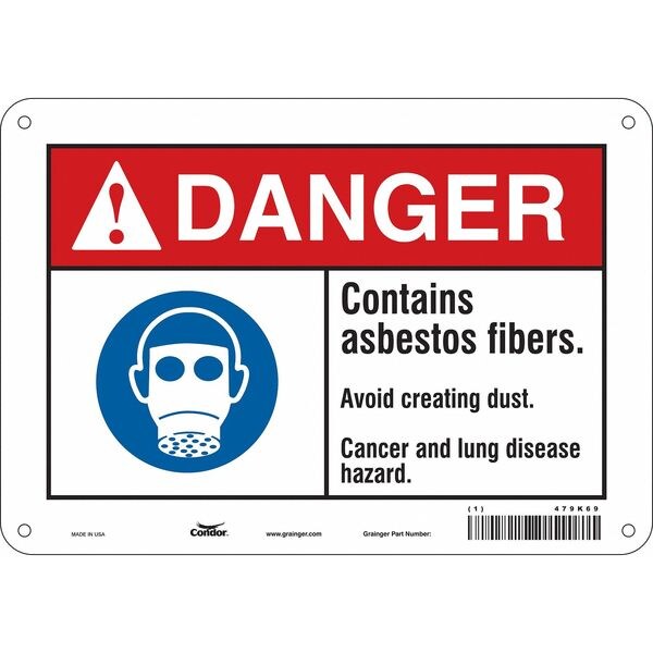 Safety Sign, Vertical Rectangle, Number of Printed Sides 1, English, Sign Format ANSI/OSHA Format, Sign Legend Contains Asbestos Fibers. Avoid Creating Dust. Cancer And Lung Disease Hazard., Sign Legend Background Color White, Sign Legend Style Symbol and Text