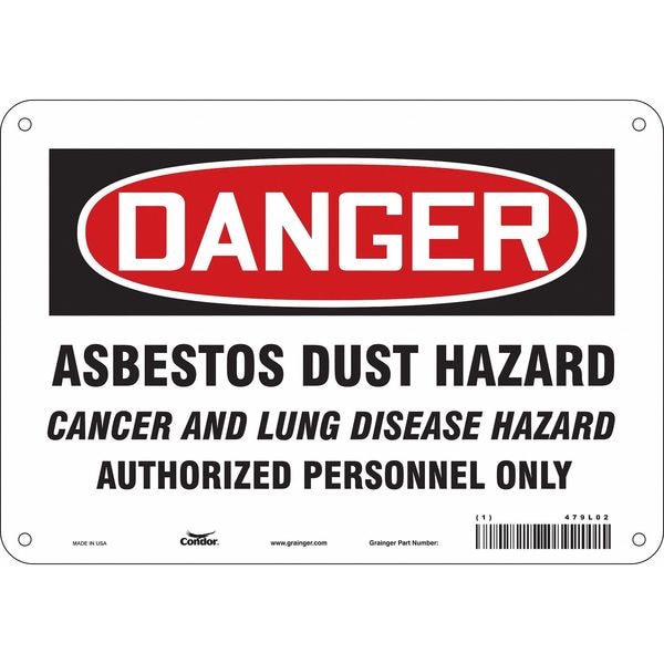 Safety Sign, Vertical Rectangle, Number of Printed Sides 1, English, Sign Format Traditional OSHA, Sign Legend Asbestos Dust Hazard Cancer And Lung Disease Hazard Authorized Personnel Only, Sign Legend Background Color White, Sign Legend Style Text