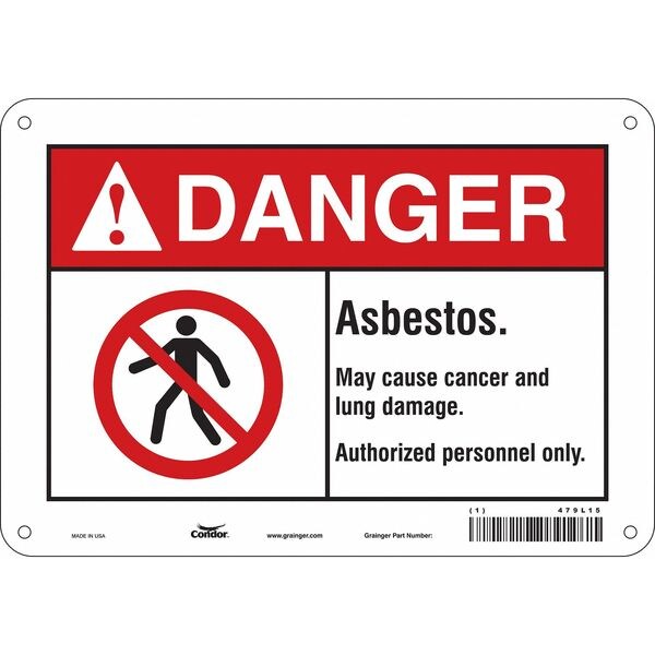 Safety Sign, Vertical Rectangle, Number of Printed Sides 1, English, Sign Format ANSI/OSHA Format, Sign Legend Asbestos. May Cause Cancer And Lung Damage. Authorized Personnel Only., Sign Legend Background Color White, Sign Legend Style Symbol and Text