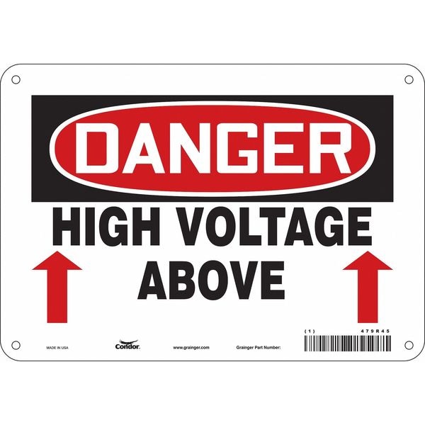 Safety Sign, Vertical Rectangle, Number of Printed Sides 1, English, Sign Format Traditional OSHA, Sign Legend High Voltage Above, Sign Legend Background Color White, Sign Legend Style Symbol and Text