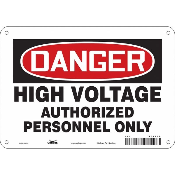 Safety Sign, Vertical Rectangle, Number of Printed Sides 1, English, Sign Format Traditional OSHA, Sign Legend High Voltage Authorized Personnel Only, Sign Legend Background Color White, Sign Legend Style Text
