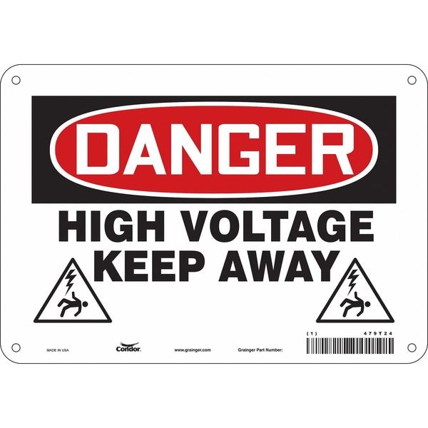 Safety Sign, Vertical Rectangle, Number of Printed Sides 1, English, Sign Format Traditional OSHA, Sign Legend High Voltage Keep Away, Sign Legend Background Color White, Sign Legend Style Symbol and Text