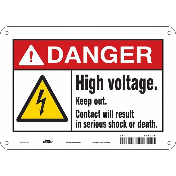 Safety Sign, Vertical Rectangle, Number of Printed Sides 1, English, Sign Format ANSI/OSHA Format, Sign Legend High Voltage. Keep Out. Will Result In Serious Shock Or Death., Sign Legend Background Color White, Sign Legend Style Symbol and Text