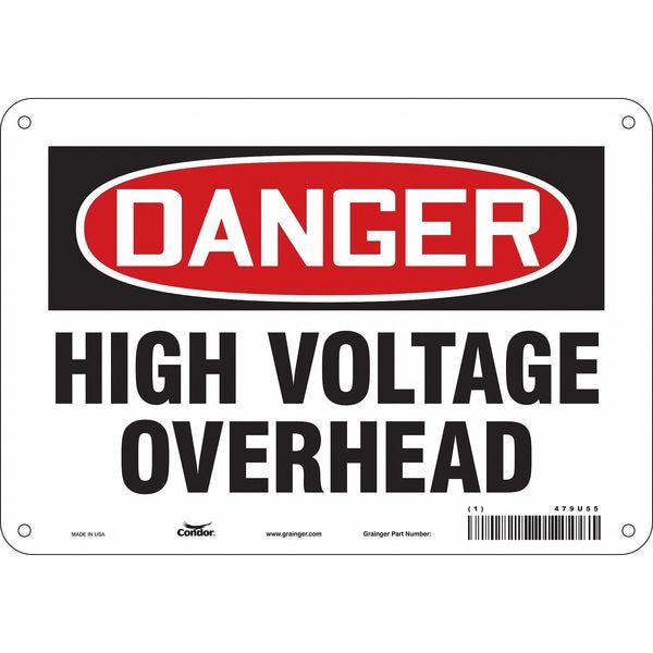 Safety Sign, Vertical Rectangle, Number of Printed Sides 1, English, Sign Format Traditional OSHA, Sign Legend High Voltage Overhead, Sign Legend Background Color White, Sign Legend Style Text