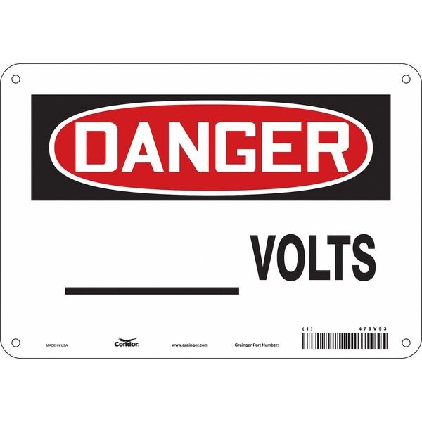 Safety Sign, Vertical Rectangle, Number of Printed Sides 1, English, Sign Format Traditional OSHA, Sign Legend ___ Volts, Sign Legend Background Color White, Sign Legend Style Text