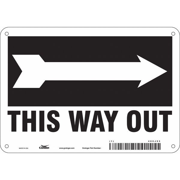 Safety Sign, Vertical Rectangle, Number of Printed Sides 1, English, Sign Legend This Way Out (Arrow), Sign Legend Background Color Black, White, Sign Legend Style Symbol and Text