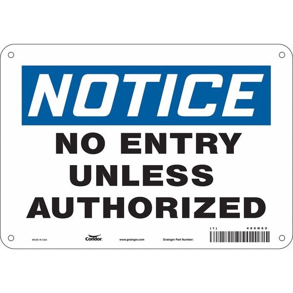 Safety Sign, Vertical Rectangle, Number of Printed Sides 1, English, Sign Format Traditional OSHA, Sign Legend No Entry Unless Authorized, Sign Legend Background Color White, Sign Legend Style Text