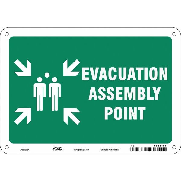 Safety Sign, Vertical Rectangle, Number of Printed Sides 1, English, Sign Legend Evacuation Assembly Point, Sign Legend Background Color Green, Sign Legend Style Symbol and Text