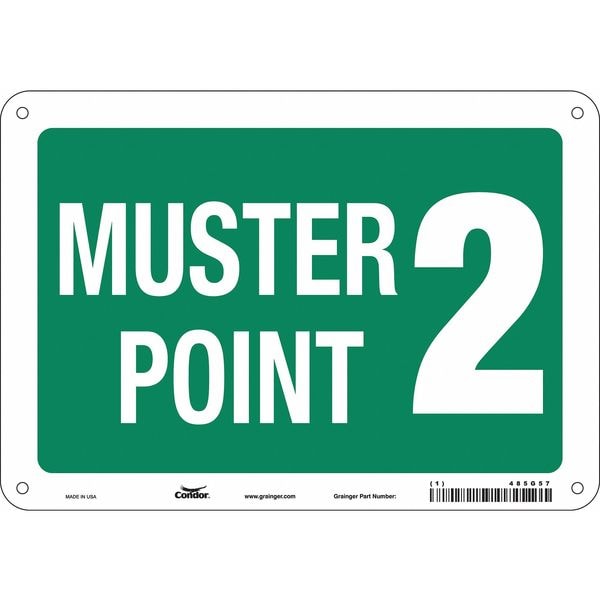 Safety Sign, Vertical Rectangle, Number of Printed Sides 1, English, Sign Format Other Format, Sign Legend Muster Point 2, Sign Legend Background Color Green, Sign Legend Style Text