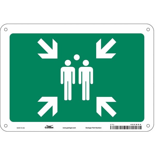 Safety Sign, Vertical Rectangle, Number of Printed Sides 1, English, Sign Format Other Format, Sign Legend Assembly Area Symbol, Sign Legend Background Color Green, Sign Legend Style Symbol