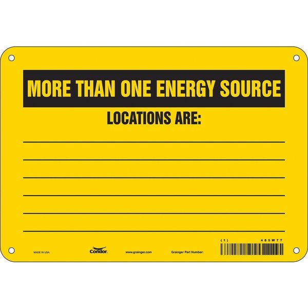 Safety Sign, Vertical Rectangle, Number of Printed Sides 1, English, Sign Format Other Format, Sign Legend More Than One Energy Source Locations Are:, Sign Legend Background Color Yellow, Sign Legend Style Text