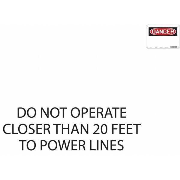 Safety Sign, Vertical Rectangle, Number of Printed Sides 1, English, Sign Format Traditional OSHA, Sign Legend Do Not Operate Closer Than 20 Feet To Power Lines, Sign Legend Background Color White, Sign Legend Style Text