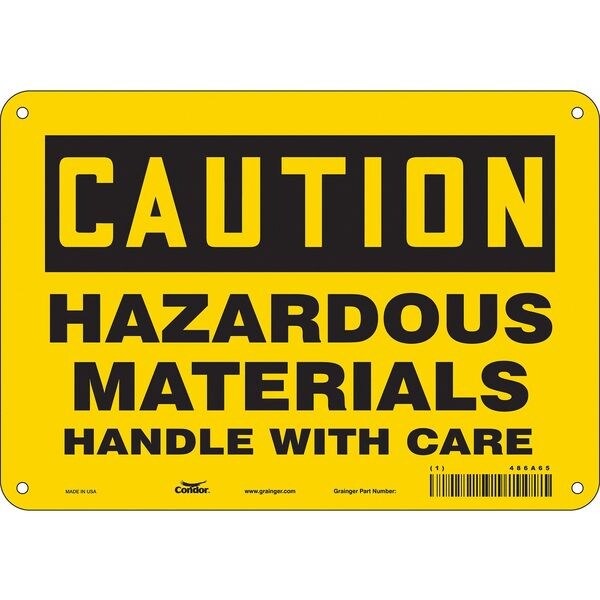 Safety Sign, Vertical Rectangle, Number of Printed Sides 1, English, Sign Format Traditional OSHA, Sign Legend Hazardous Materials Handle With Care, Sign Legend Background Color Yellow, Sign Legend Style Text
