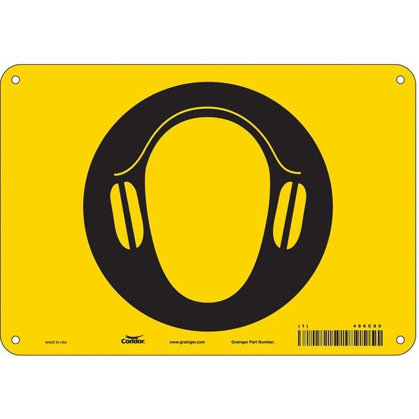 Safety Sign, Vertical Rectangle, Number of Printed Sides 1, English, Sign Format Other Format, Sign Legend Hearing Protection Symbol, Sign Legend Background Color Yellow, Sign Legend Style Symbol