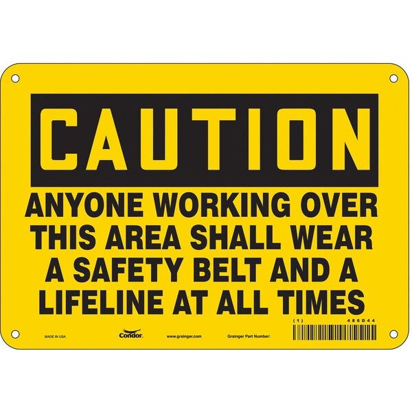 Safety Sign, Vertical Rectangle, Number of Printed Sides 1, English, Sign Format Traditional OSHA, Sign Legend Anyone Working Over This Area Shall Wear A Safety Belt And A Lifeline At All Times, Sign Legend Background Color Yellow, Sign Legend Style Text