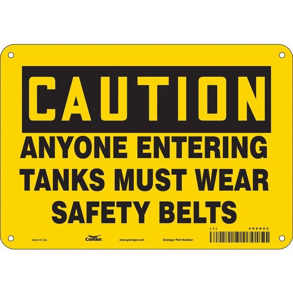 Safety Sign, Vertical Rectangle, Number of Printed Sides 1, English, Sign Format Traditional OSHA, Sign Legend Anyone Entering Tanks Must Wear Safety Belts, Sign Legend Background Color Yellow, Sign Legend Style Text