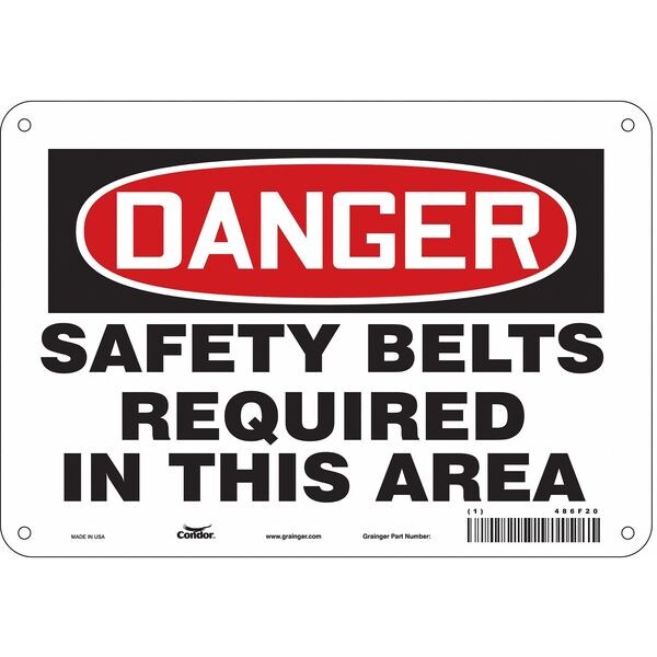 Safety Sign, Vertical Rectangle, Number of Printed Sides 1, English, Sign Format Traditional OSHA, Sign Legend Safety Belts Required In This Area, Sign Legend Background Color White, Sign Legend Style Text