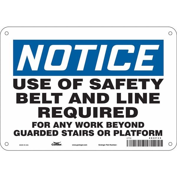 Safety Sign, Vertical Rectangle, Number of Printed Sides 1, English, Sign Format Traditional OSHA, Sign Legend Use Of Safety Belt And Line Required For Any Work Beyond Guarded Stairs Or Platform, Sign Legend Background Color White, Sign Legend Style Text