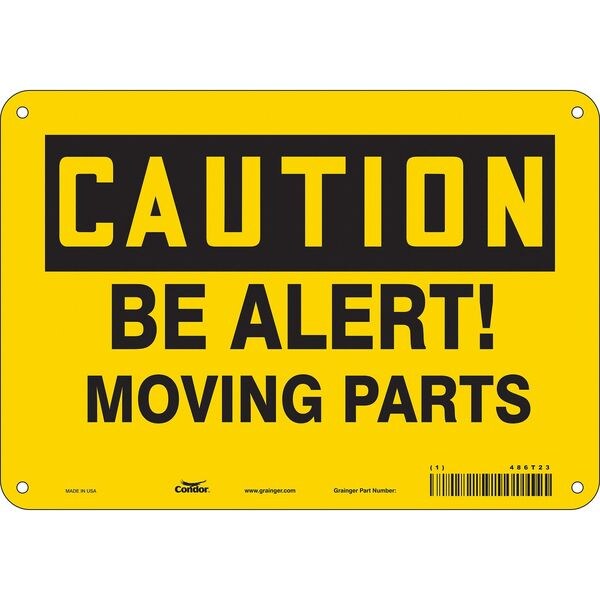 Safety Sign, Vertical Rectangle, Number of Printed Sides 1, English, Sign Format Traditional OSHA, Sign Legend Be Alert! Moving Parts, Sign Legend Background Color Yellow, Sign Legend Style Text