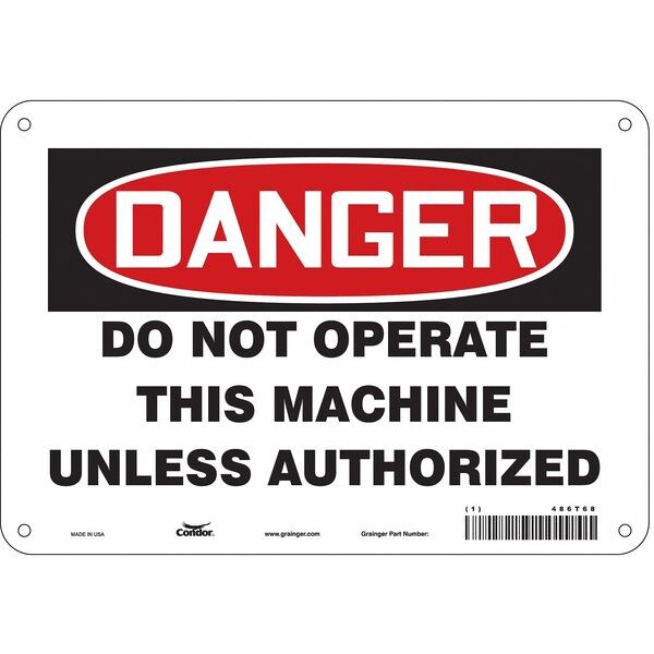 Safety Sign, Vertical Rectangle, Number of Printed Sides 1, English, Sign Format Traditional OSHA, Sign Legend Do Not Operate This Machine Unless Authorized, Sign Legend Background Color White, Sign Legend Style Text