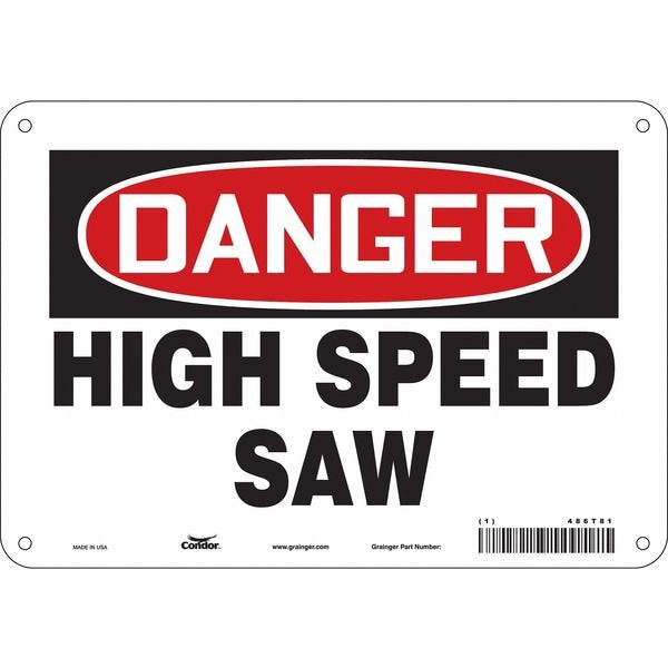 Safety Sign, Vertical Rectangle, Number of Printed Sides 1, English, Sign Format Traditional OSHA, Sign Legend High Speed Saw, Sign Legend Background Color White, Sign Legend Style Text