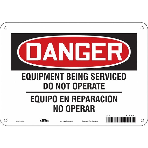 Safety Sign, Vertical Rectangle, Number of Printed Sides 1, English, Spanish, Sign Format Traditional OSHA, Sign Legend Equipment Being Serviced Do Not Operate/Equipo En Reparacion No Operar, Sign Legend Background Color White, Sign Legend Style Text