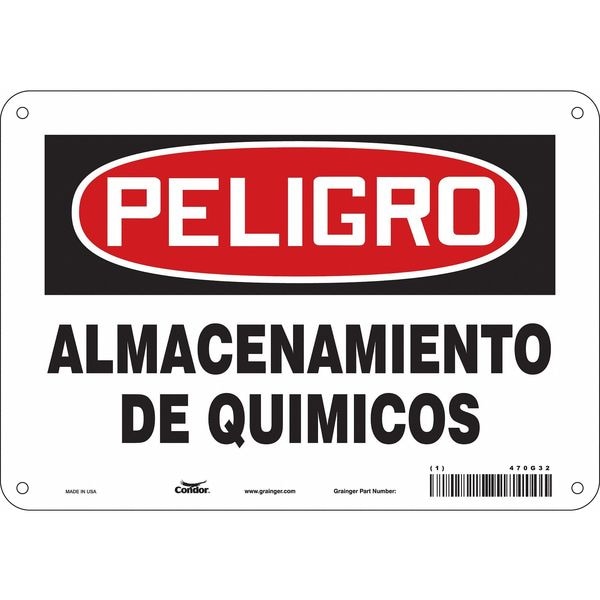 Safety Sign, Vertical Rectangle, Number of Printed Sides 1, Spanish, Sign Format Traditional OSHA, Sign Legend Almacenamiento De Quimicos, Sign Legend Background Color White, Sign Legend Style Text