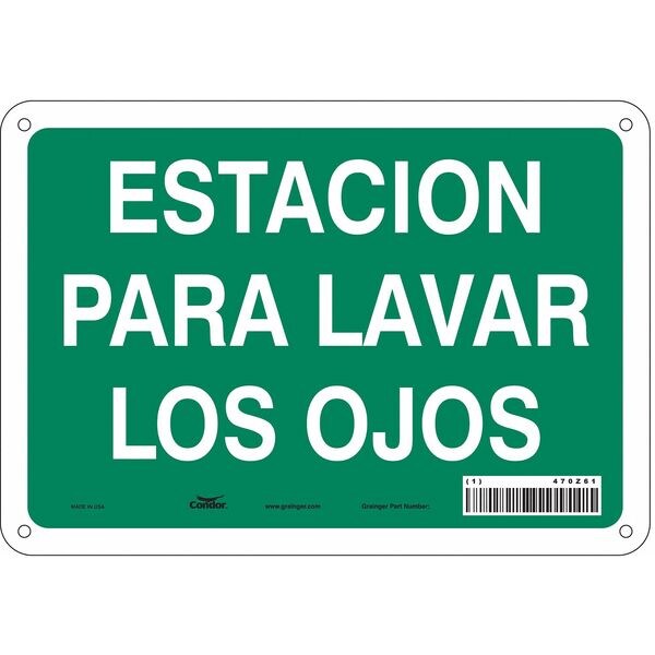 Safety Sign, Vertical Rectangle, Number of Printed Sides 1, Spanish, Sign Format Other Format, Sign Legend Estacion Para Lavar Los Ojos, Sign Legend Background Color Green, Sign Legend Style Text