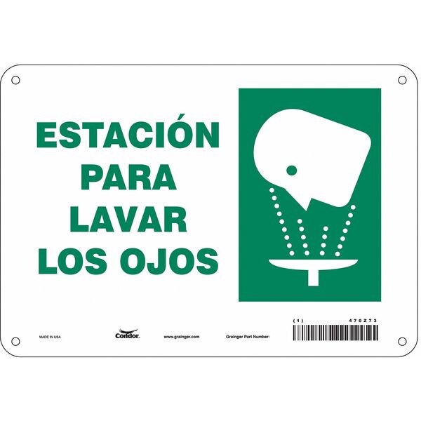 Safety Sign, Vertical Rectangle, Number of Printed Sides 1, Spanish, Sign Format Other Format, Sign Legend Estacion Para Lavar Los Ojos, Sign Legend Background Color Green; White, Sign Legend Style Symbol and Text