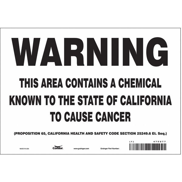 THIS AREA CONTAINS A CHEMICAL KNOWN TO THE STATE OF CALIFORNIA TO CAUSE CANCER (PROPOSITION 65, CALIFORNIA HEALTH AND SAFETY CODE SECTION 25249.6 ET. SEQ.)