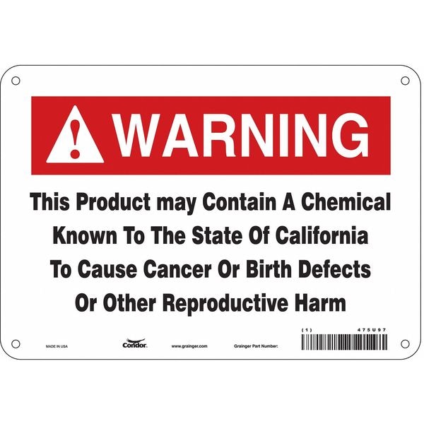 THIS PRODUCT MAY CONTAIN A CHEMICAL KNOWN TO THE STATE OF CALIFORNIA TO CAUSE CANCER OR BIRTH DEFECTS OR OTHER REPRODUCTIVE HARM
