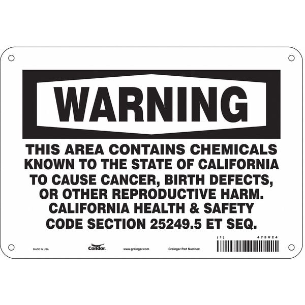 THIS AREA CONTAINS CHEMICALS KNOWN TO THE STATE OF CALIFORNIA TO CAUSE CANCER, BIRTH DEFECTS, OR OTHER REPRODUCTIVE HARM. CALIFORNIA HEALTH & SAFETY CODE SECTION 25249.5 ET SEQ.