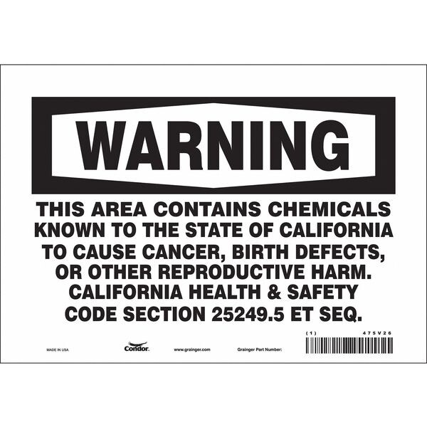 THIS AREA CONTAINS CHEMICALS KNOWN TO THE STATE OF CALIFORNIA TO CAUSE CANCER, BIRTH DEFECTS, OR OTHER REPRODUCTIVE HARM. CALIFORNIA HEALTH & SAFETY CODE SECTION 25249.5 ET SEQ.