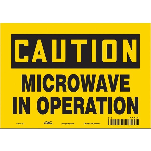 Safety Sign, Vertical Rectangle, Number of Printed Sides 1, English, Sign Format Traditional OSHA, Sign Legend Microwave In Operation, Sign Legend Background Color Yellow, Sign Legend Style Text