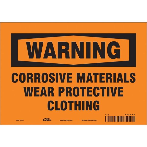 Safety Sign, Vertical Rectangle, Number of Printed Sides 1, English, Sign Format Traditional OSHA, Sign Legend Corrosive Materials Wear Protective Clothing, Sign Legend Background Color Orange, Sign Legend Style Text
