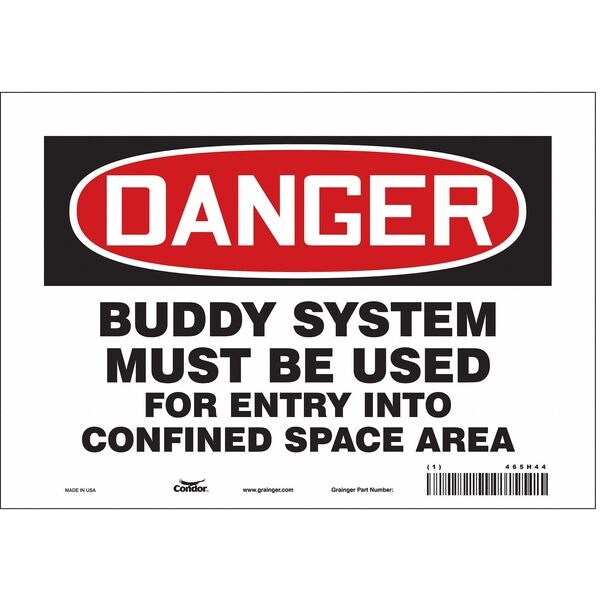 Safety Sign, Vertical Rectangle, Number of Printed Sides 1, English, Sign Format Traditional OSHA, Sign Legend Buddy System Must Be Used For Entry Into Confined Space Area, Sign Legend Background Color White, Sign Legend Style Text