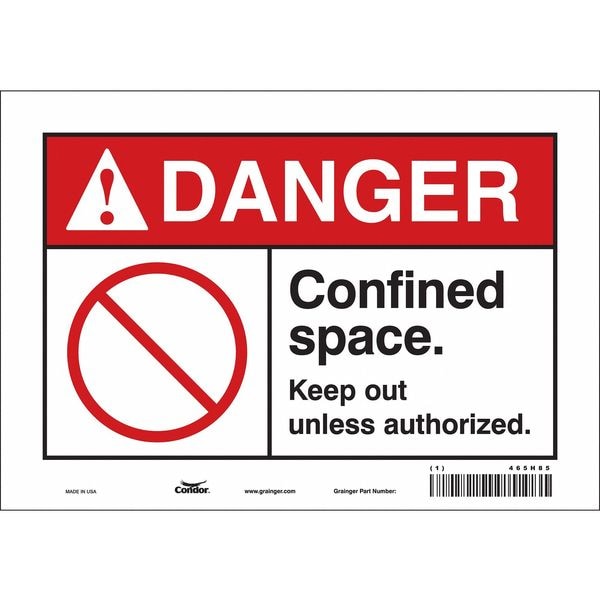 Safety Sign, Vertical Rectangle, Number of Printed Sides 1, English, Sign Format ANSI/OSHA Format, Sign Legend Confined Space. Keep Out Unless Authorized., Sign Legend Background Color White, Sign Legend Style Symbol and Text
