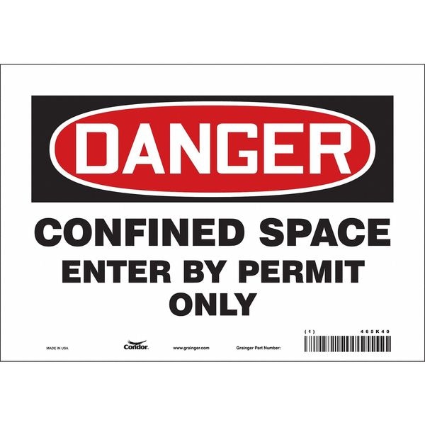 Safety Sign, Vertical Rectangle, Number of Printed Sides 1, English, Sign Format Traditional OSHA, Sign Legend Confined Space Entry By Permit Only, Sign Legend Background Color White, Sign Legend Style Text