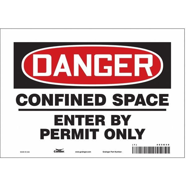 Safety Sign, Vertical Rectangle, Number of Printed Sides 1, English, Sign Format Traditional OSHA, Sign Legend Confined Space Entry By Permit Only, Sign Legend Background Color White, Sign Legend Style Text