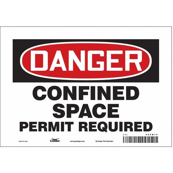 Safety Sign, Vertical Rectangle, Number of Printed Sides 1, English, Sign Format Traditional OSHA, Sign Legend Confined Space Permit Required, Sign Legend Background Color White, Sign Legend Style Text