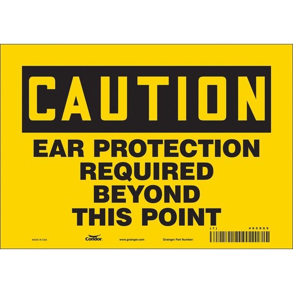 Safety Sign, Vertical Rectangle, Number of Printed Sides 1, English, Sign Format Traditional OSHA, Sign Legend Ear Protection Required Beyond This Point, Sign Legend Background Color Yellow, Sign Legend Style Text