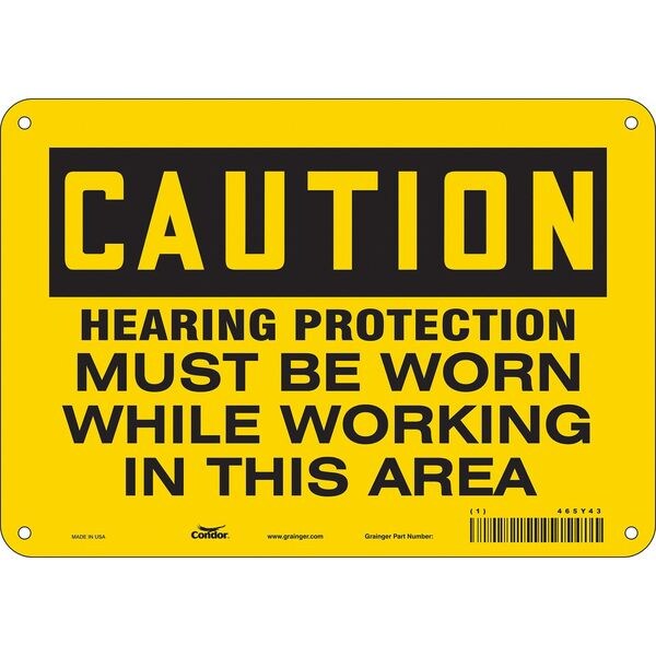 Safety Sign, Vertical Rectangle, Number of Printed Sides 1, English, Sign Format Traditional OSHA, Sign Legend Hearing Protection Must Be Worn While Working In This Area, Sign Legend Background Color Yellow, Sign Legend Style Text