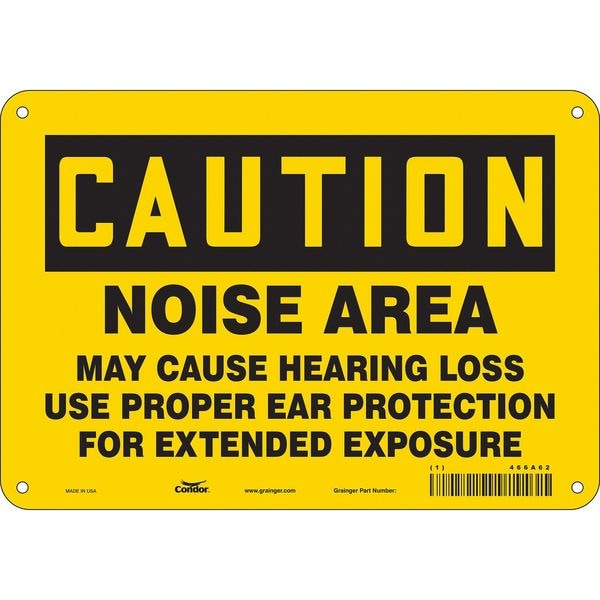 Safety Sign, Vertical Rectangle, Number of Printed Sides 1, English, Sign Format Traditional OSHA, Sign Legend Noise Area May Cause Hearing Loss Use Proper Ear Protection For Extended Exposure, Sign Legend Background Color Yellow, Sign Legend Style Text